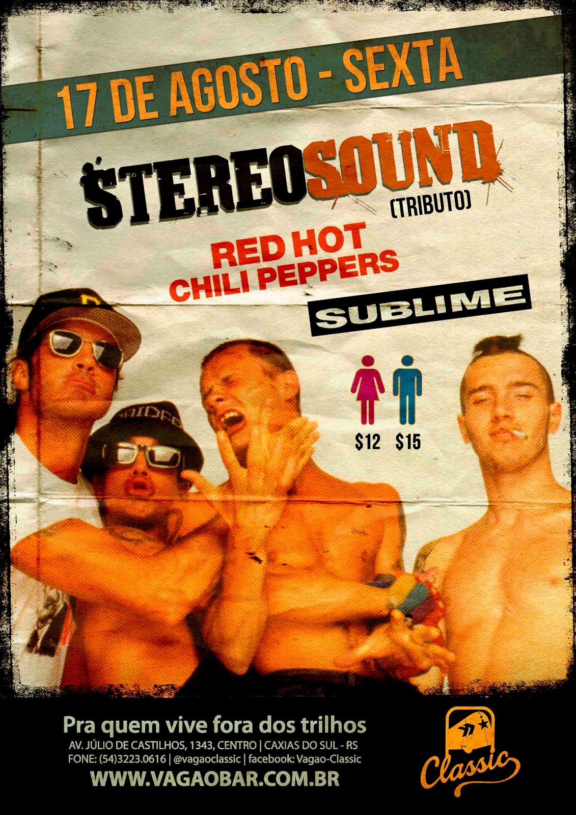 Um final de semana para os fortes! Nesta semana o Vagão Classic apresenta uma maratona de shows imperdíveis para quem não vive sem rock! Começamos na sexta-feira, 17 de agosto, com uma dobradinha de muito rock and roll! Trata-se da banda Stereosound trazendo para Caxias seu tributo à Red Hot Chili Peppers e Sublime! Duas bandas consagradas do cenário rock mundial. O precinho para curtir essa dobradinha rock é exatamente o mesmo de sempre! R$ 12,00 (doze reais) para elas e R$ 15,00 (quinze reais) para eles! Então te prepara porque vai rolar de The Zephyr Song à Santeria! Uma verdadeira viajem pela história do rock ao melhor estilo Vagão de ser! Partiu?